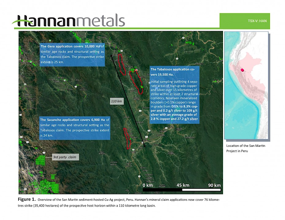 Vancouver, Canada – Hannan Metals Limited (“Hannan” or the “Company”) (TSXV: HAN) (OTCPK: HANNF) announces field teams have commenced the 2019 dry-season exploration program at the San Martin sediment-hosted copper-silver project in north-central Peru.
