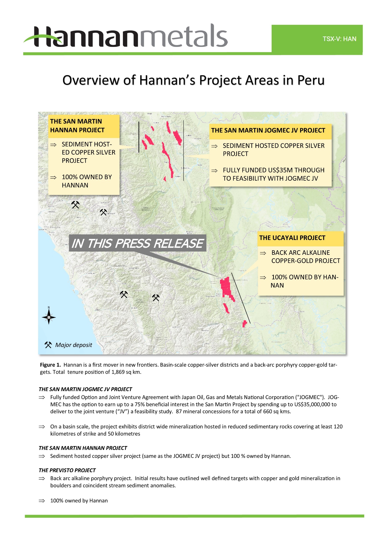 Michael Hudson, CEO states, “The back-arc basins of Peru have been sporadically explored over the last 30 years. The area represents a true last frontier within the metal-rich Andes mountain chain. In a similar way to our vast sediment-hosted copper-silver project in San Martin, we have once again opened a new search space in Ucayali, this time for copper-gold porphyry systems. Big systems have big footprints, and in a rare event, field teams were able to sample up to 25.6% copper in creeks within the first day or so of visiting the Ucayali project. Hannan is extremely well poised for a strong 2021 with a top 10 ground position in Peru, two extremely prospective and large copper projects, and a great joint venture partner JOGMEC earning up to 75% of the at San Martin project by spending US$35,000,000 to deliver a feasibility study.”