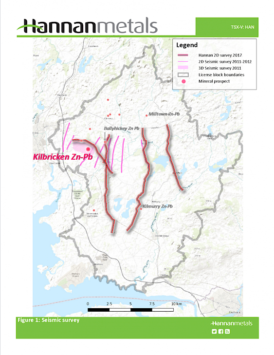 Mr. Michael Hudson, CEO and Chairman, states: “The application of an innovative technology such as seismic to our exploration program provides Hannan the opportunity to greatly accelerate discovery rate at our County Clare zinc project. Hannan is one of few hard rock companies to apply seismic surveying to mineral exploration globally. The geological data collected will allow our geological experts to identify structures that may host base metal deposits in the both the local area surrounding the Kilbricken resource, and beyond over a large regional area.”