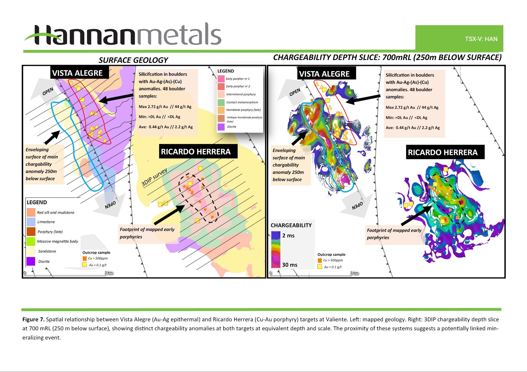 Vancouver, Canada – December 03, 2024 – Hannan Metals Limited (“Hannan” or the “Company”) (TSXV: HAN) (OTCPK: HANNF) is pleased to report the discovery of a significant chargeability anomaly at the Ricardo Herrera copper-gold porphyry project within the Company’s 100%-owned Valiente copper-gold project in Peru (Figure 1).
