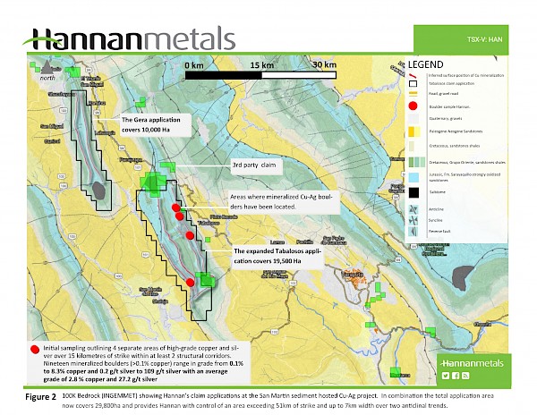 - Hannan has doubled the area of its mineral claim applications at the San Martin sediment-hosted copper-silver project;