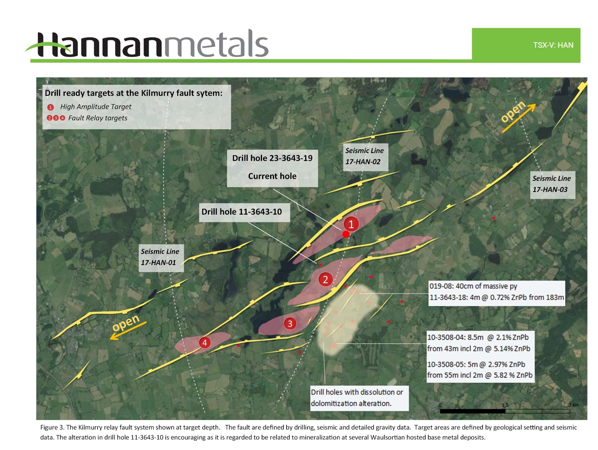 Vancouver, Canada – Hannan Metals Limited (“Hannan” or the “Company”) (TSXV: HAN) (OTCPK: HANNF) is pleased to announce that drilling has commenced at the Kilmurry zinc-silver-lead target in Ireland directly targeting a seismic anomaly interpreted to represent massive sulphides at 700 m vertical depth.