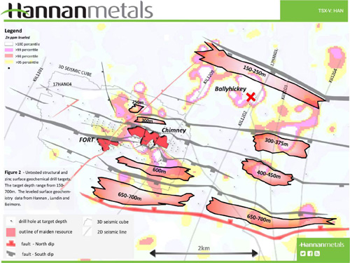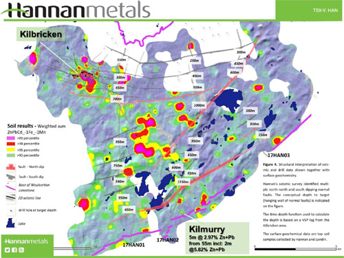 Vancouver, Canada – Hannan Metals Limited (“Hannan” or the “Company”) (TSX.V: HAN) (OTCPK: HANNF) is pleased to present initial results of processing and interpretation of the 40.6km seismic survey completed at the Company’s Kilbricken zinc-lead-silver prospect and extensive 35,444 hectare Clare project in County Clare, Ireland.